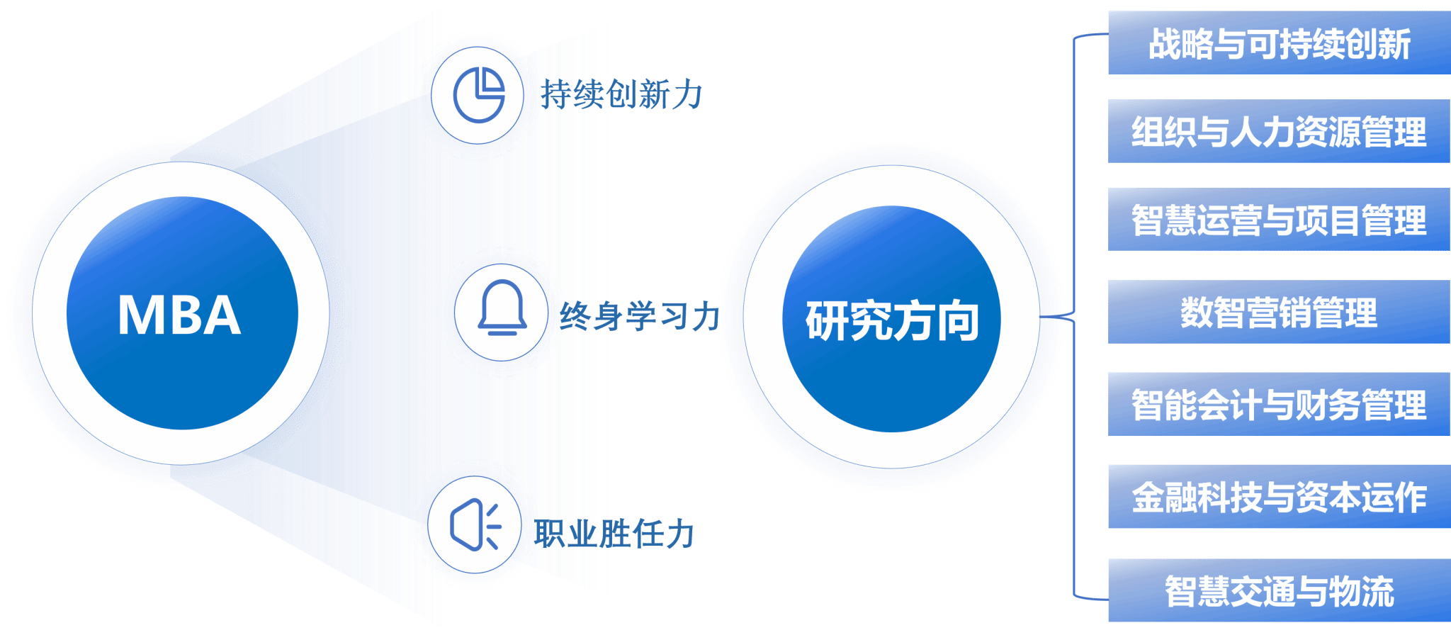 西南交通大学专业硕士项目(MBA、EMBA、MEM)课程体系紧贴国家发展战略与行业前沿,聚焦管理理论与实践融合,分层次、模块化打造高水平人才培养体系。