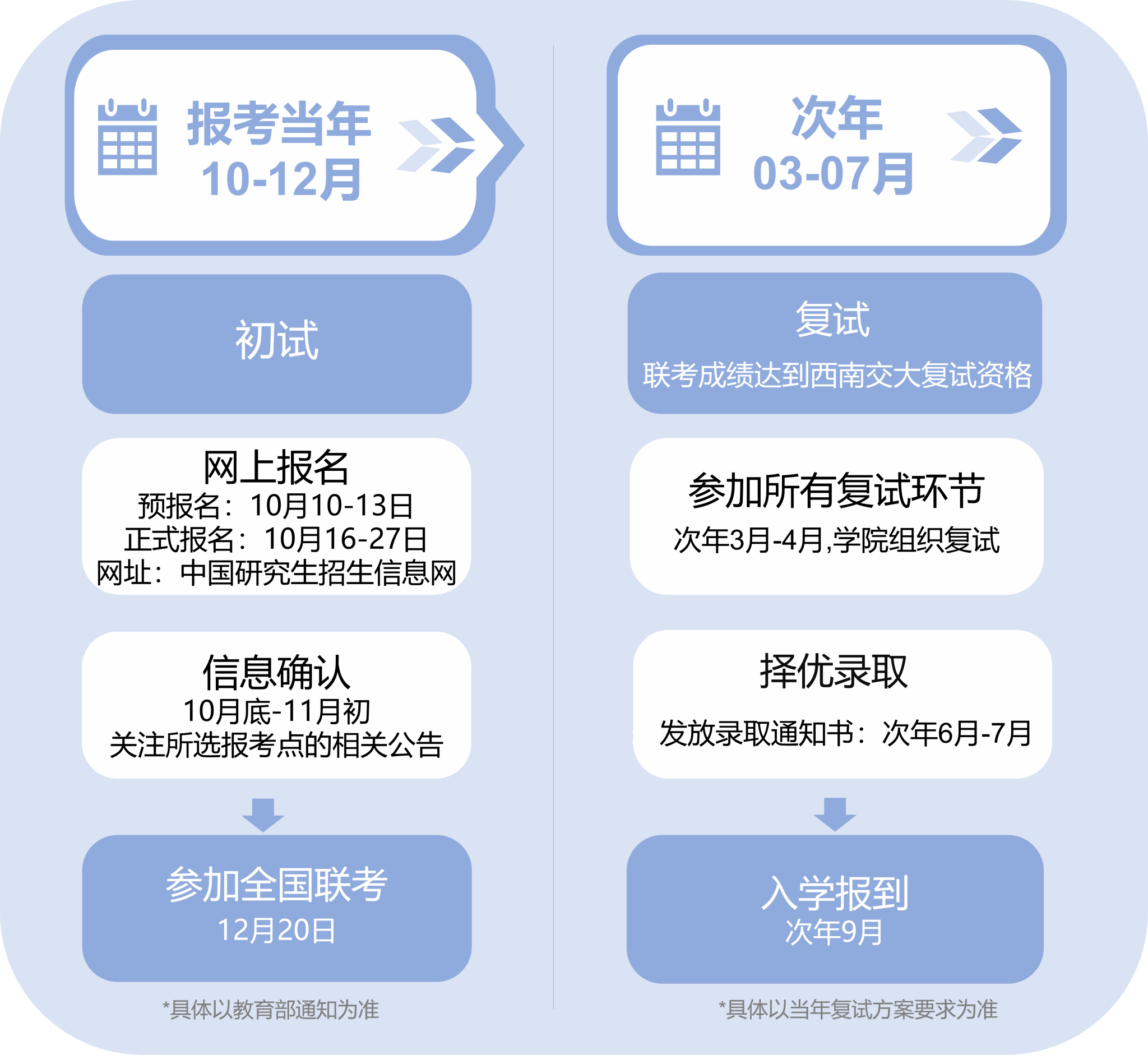 。请参见当年《西南交通大学硕士研究生招生章程》,招生考试其他有关事项请参见当年《全国硕士研究生招生工作管理规定》,或及时登录“研招网”浏览查询报考须知和学校官网相关公告。