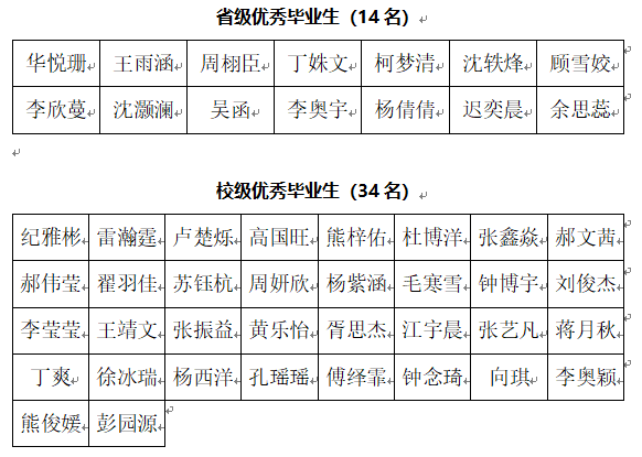 2026届本科生优秀毕业生名单进行公示,公示名单如下: