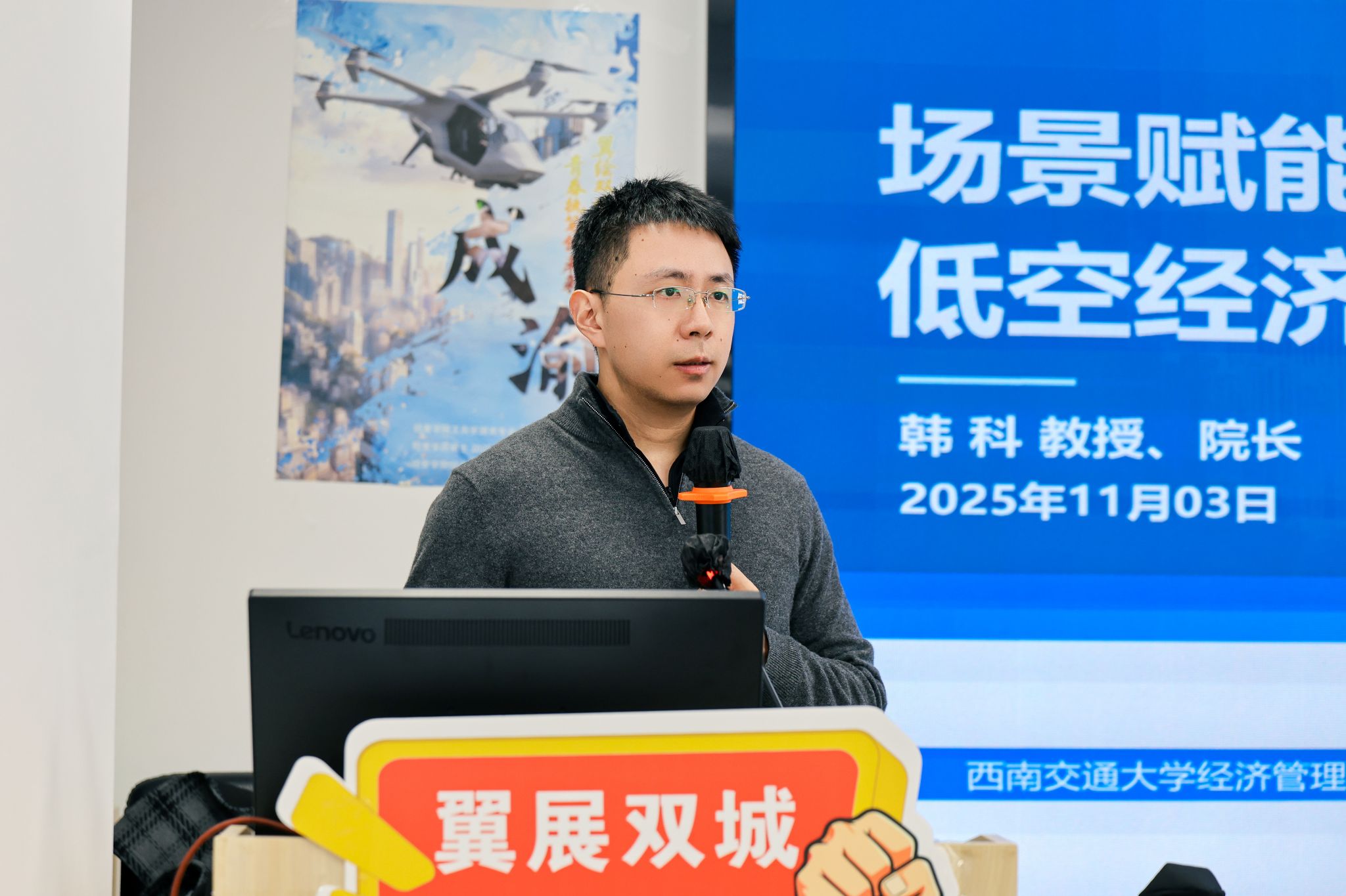 院长韩科围绕“赋能场景 飞越未来”带领同学们开展主题交流,解读《成渝地区双城经济圈建设规划纲要》,系统剖析低空经济产业链(无人机、通航服务、基础设施等)及在物流、文旅、应急等领域的应用潜力。通过生动形象的案例、细致精确的数据,帮助团员建立对低空经济的系统性认知。