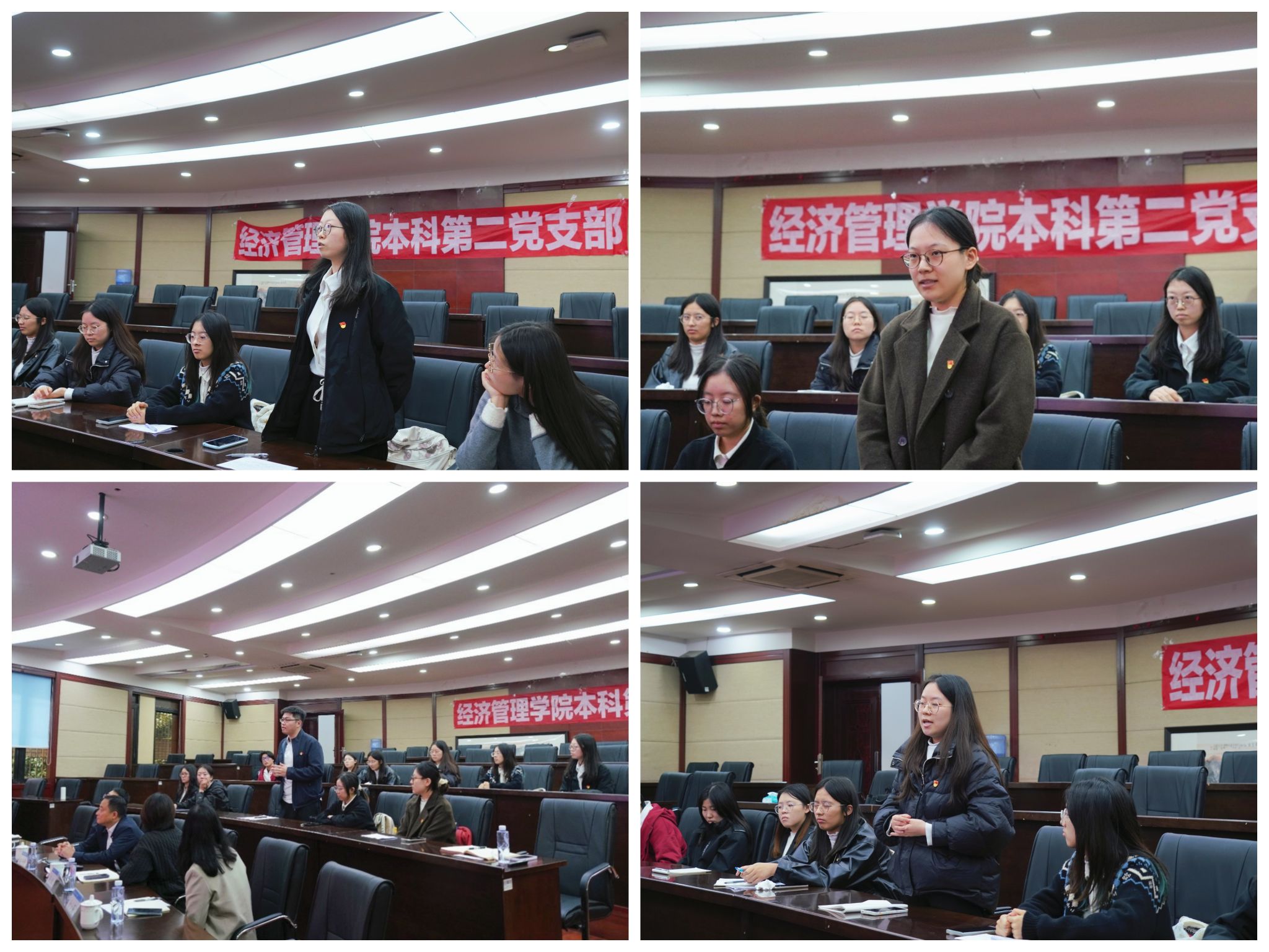 在自由交流环节,党员同志们围绕“大学生如何将国家战略与个人日常学习和职业规划相结合”谈认识、谈感悟。赵玉彤同志认为教育正在打破专业壁垒,学校也提供了很多实战机会,经管学子要积极参加,掌握更多的技能,锻炼解决复杂问题的能力。陈轩羽同志提出大三学生要早早明确未来发展方向,掌握扎实的专业本领,牢牢树立为国报国的使命担当。吴函和郭浩洋两位同志则分别从保研升学和就业实习两个方面,分享自己的经验与建议。